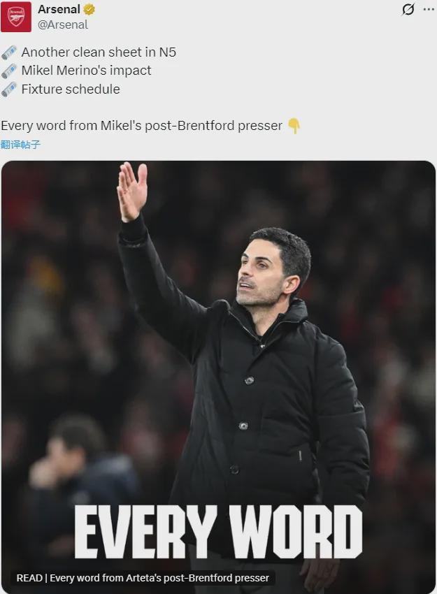 阿尔特塔出席了赛后新闻发布会,我们来看看阿森纳主帅的发言。